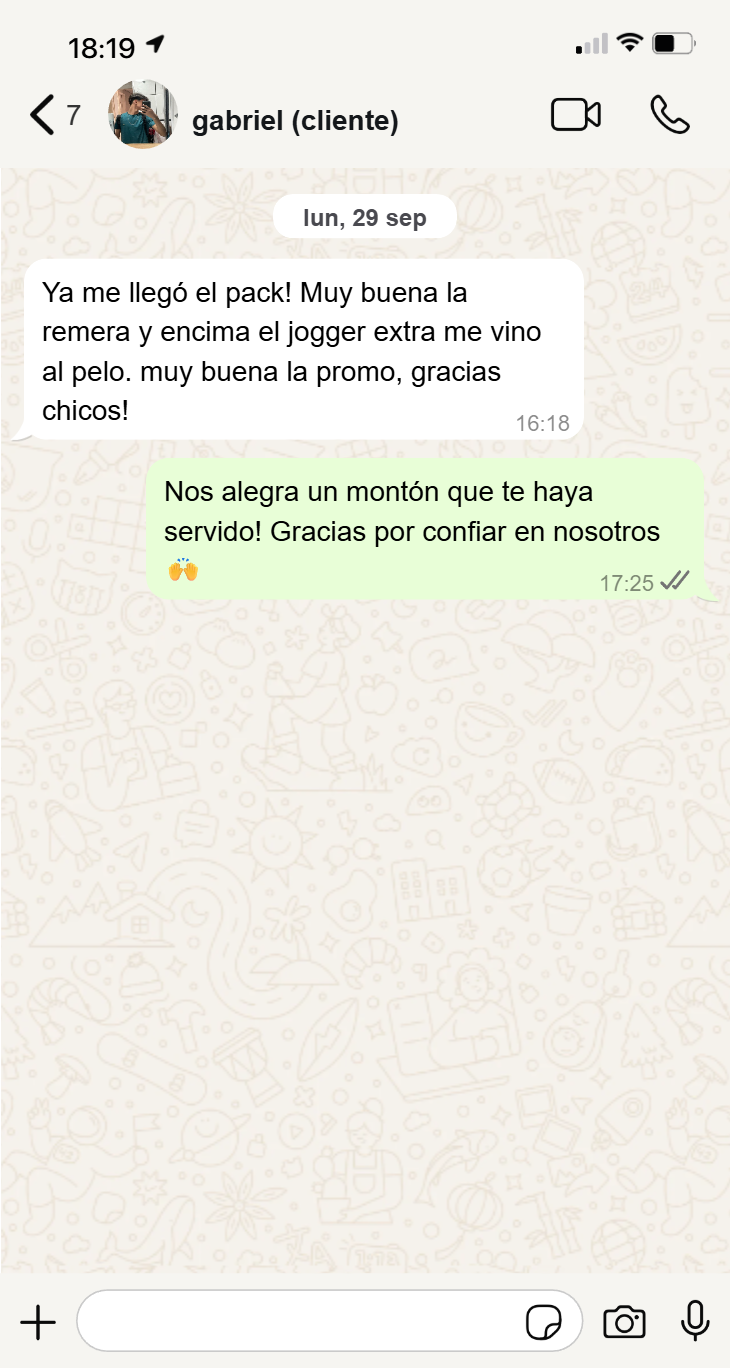 Sí, leíste bien. Comprando el pack, además de tu jogger baggy y tu remera oversize, te llevás otro jogger baggy extra sin costo, detallar color y talle a nuestro whatsapp.
